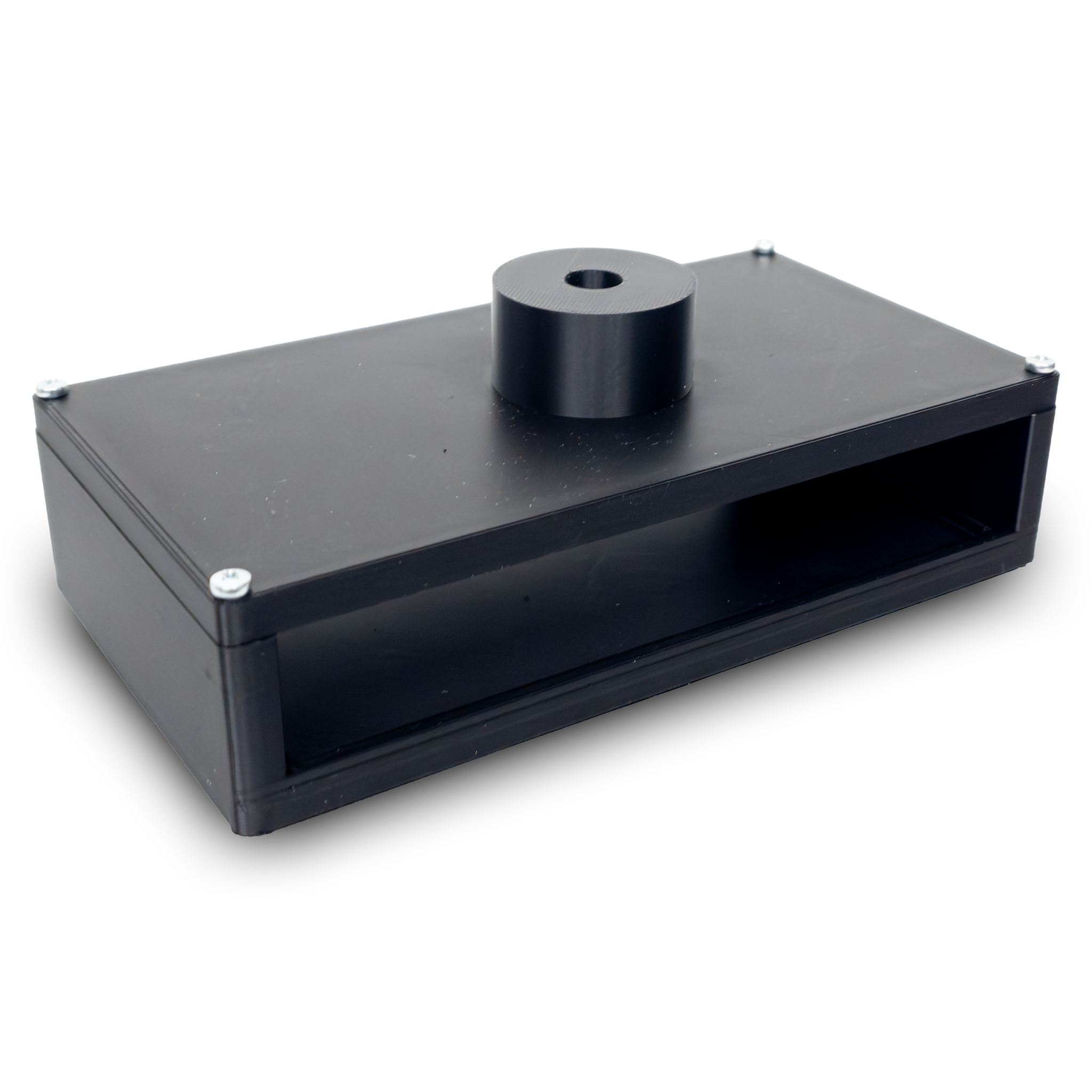 With this mounting bracket it is possible to attach a Laserworld ShowNET interface firmly to truss or pipes. This significantly helps with organizing and tidying cables that connect to the ShowNET interface. the bracket / enclosure can hold an M10 screw that can be used with a spikot and a clamp.