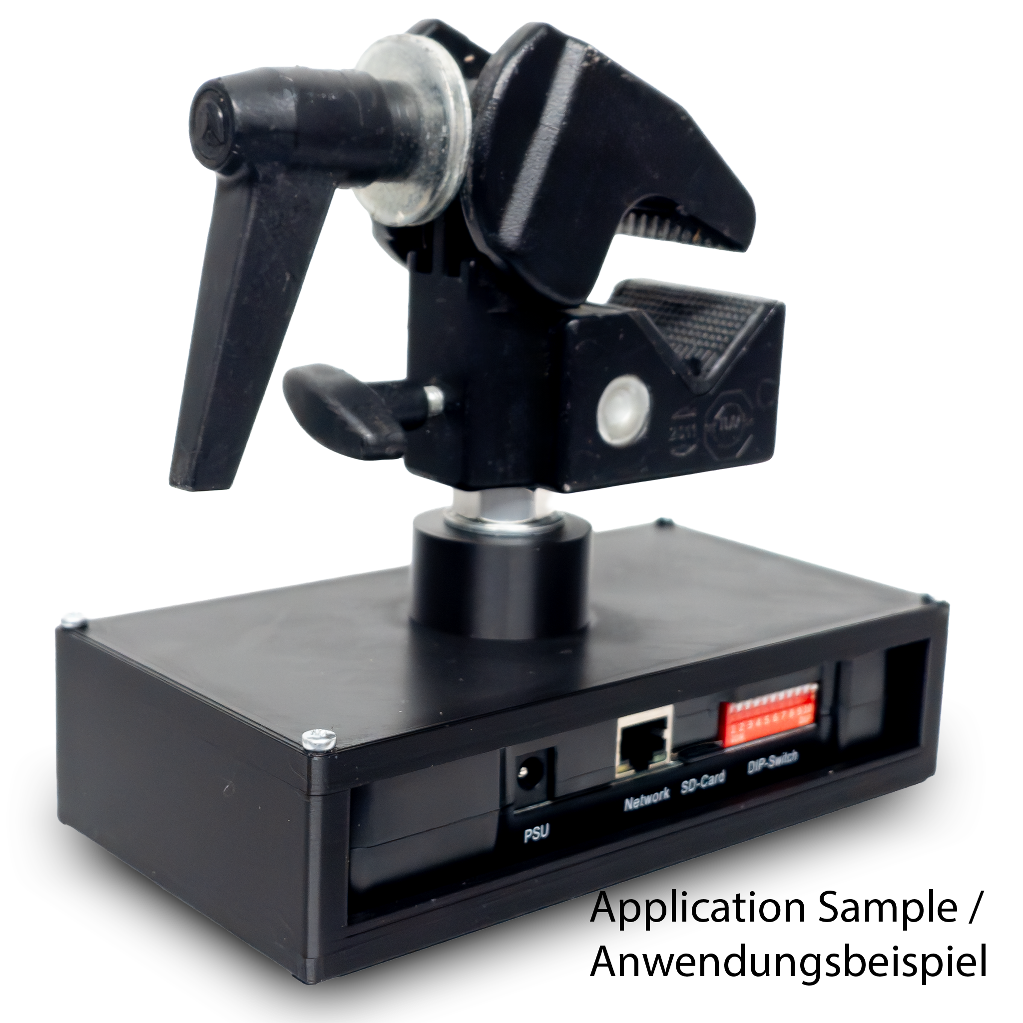 Truss mounting bracket / enclosure suitable for external ShowNET laser interfaces by Laserworld.